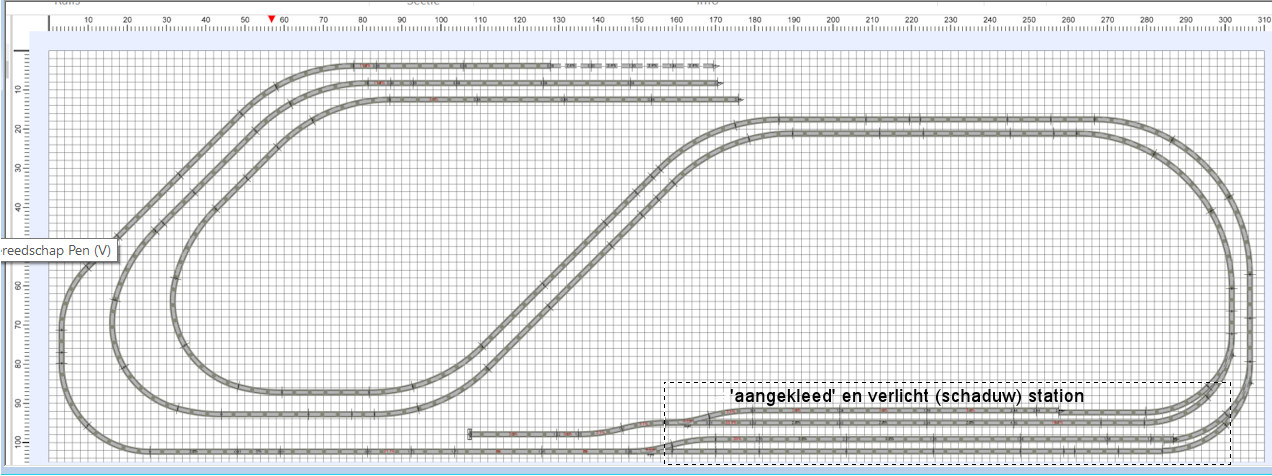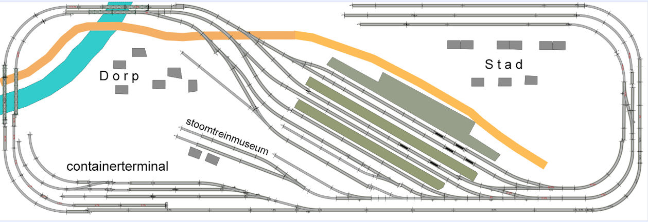 de digitalisering voortgezet moest worden met blokken, bezetmelders, Koploper etc., maarrrrr toch maar niet. Buiten de kosten toch teveel afleiding van waar het mij om gaat ... het bedenken en bouwen zelf en de scenery. Hieronder het 21, 22, 23e enz. idee voor de nieuwe baan.